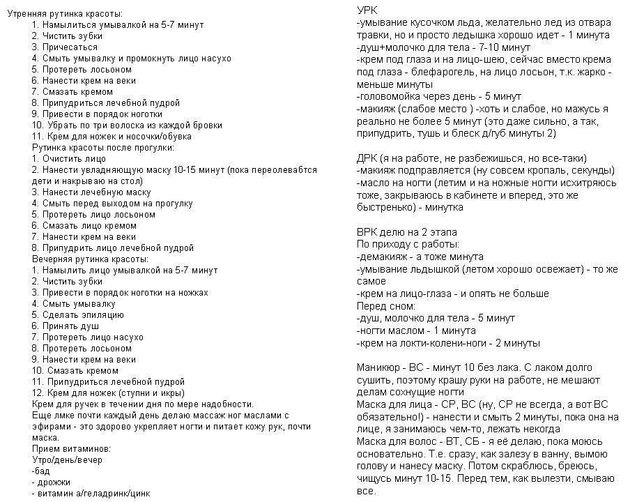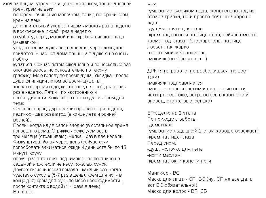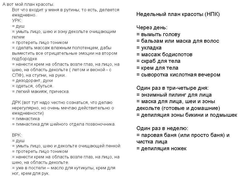 Добавим несколько готовых планов красоты, которые разработали и используют девушки по флай.