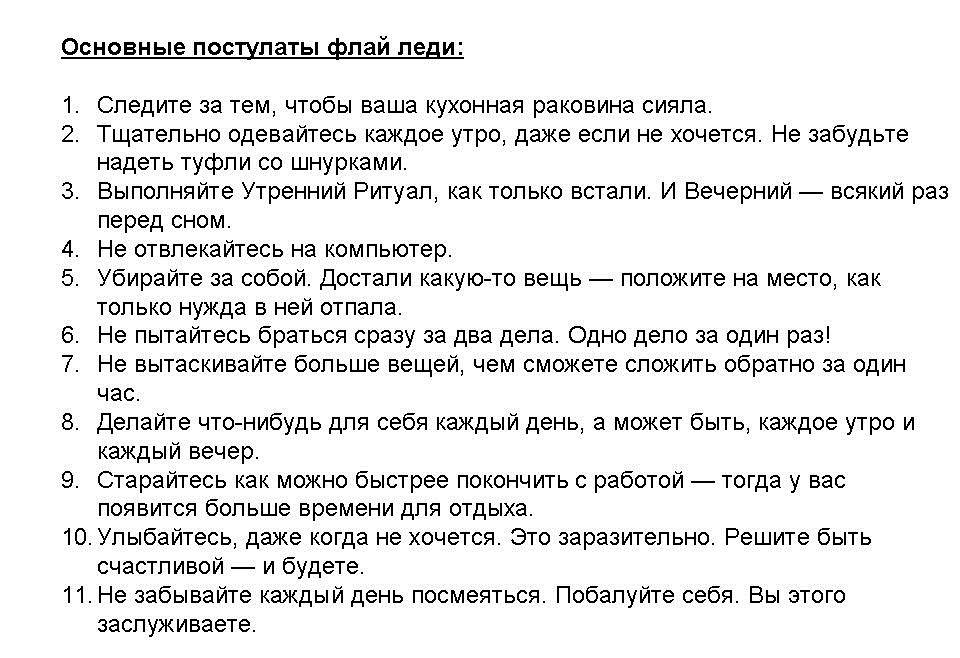 образец плана процедур по уходу за собой по системе флай леди, пример 1