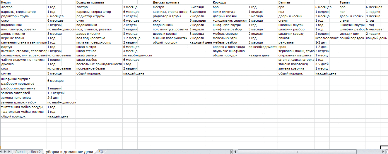 Ниже добавим несколько таблиц, помогающих организовать уборку в доме для устранения лишнего хлама в первую очередь.