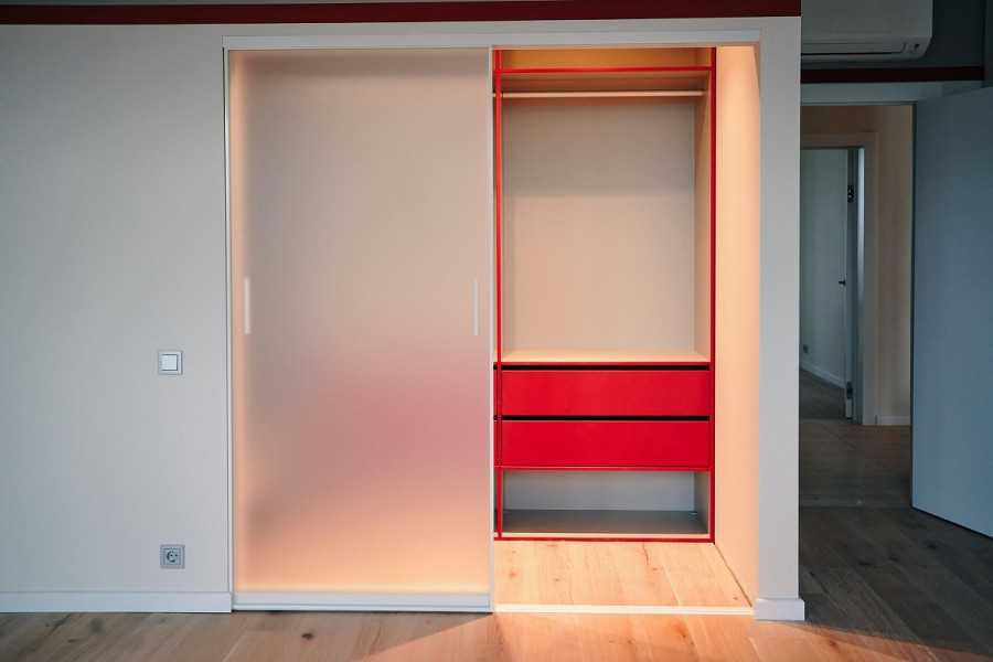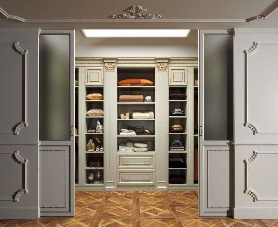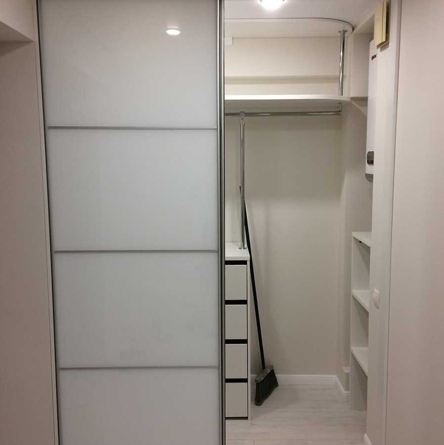 Один из самых оптимальных вариантов, когда в квартире уже имеется отдельное помещение. Владельцу и мастеру достаточно лишь выполнить внутреннюю отделку помещения, оборудовать полки, стеллажи и центральную ось для вешалок. Последним этапом подбирается дверь и монтируется подвижная конструкция.