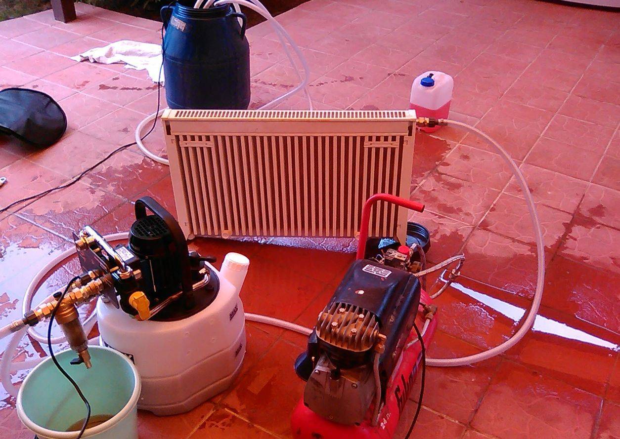 Перед тем как проводить испытательные процедуры на системах, которые уже эксплуатировались в течение определённого времени, рекомендовано произвести промывку труб отопительного контура. Эта операция может быть выполнена разными способами, но главная ее цель состоит в очистке внутренних поверхностей труб от наросшей за время эксплуатации отопительной системы накипи, ржавчины, солевых и других отложений.