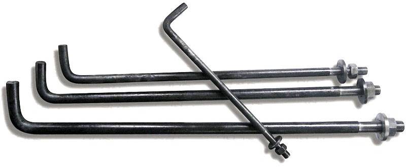 Такие изделия, изготавливаемые в соответствии с требованиями ГОСТ 24379.1-80, выполнены в виде металлического штыря, конец которого имеет изогнутую форму и напоминает крюк. В соответствии с вышеуказанным ГОСТом, максимальная длина таких крепежных изделий составляет 180 см. Используются они в фундаментных конструкциях, выполненных из железобетона.