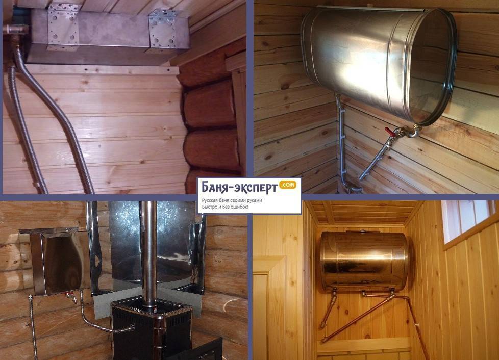 Расположить бак в бане можно в разных вариантах. В основном используются такие разновидности: