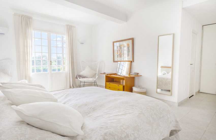 Если поместить в такой спальне большое зеркало, она будет казаться более просторной, потому что оно будет отражать все предметы в помещении и подарит ему аромат свежести.