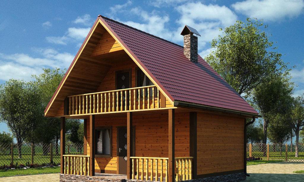 Из бруса. Такое строение не только не заберёт много пространства на участке, но и станет отличным его дополнением. Несмотря на то что вместо террасы сделан небольшой балкон, места на нём будет достаточно не только для отдыха, но также и для чаепития.