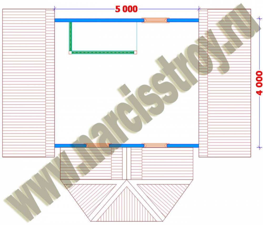 - Каркасно-рамочный. Устанавливается на фундамент. Монтируется стропильная система и набивается обрешетка. По окончанию установки крыши каркас обшивается минеральной ватой и ДСП.