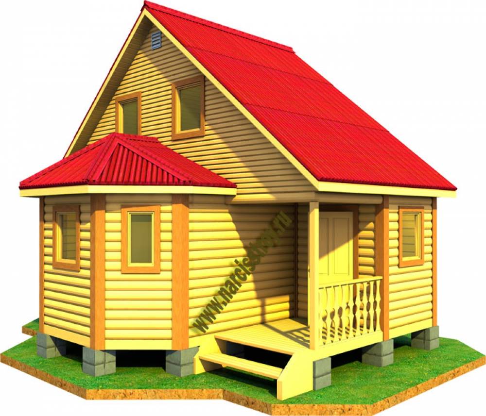 Каркасный дом 6 на 4 не требует мощного основания. Для его строительства вполне достаточного столбчатого или облегченного ленточного фундамента.