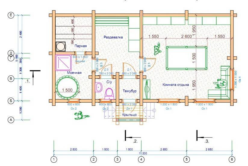 При проектировании бани необходимо предусмотреть следующие функциональные блоки: