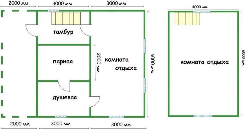 - из моечной и парной есть небольшие окна 40 на 40 см, если для моечной это обычное дело, то окно в парной часто не предусматривается;