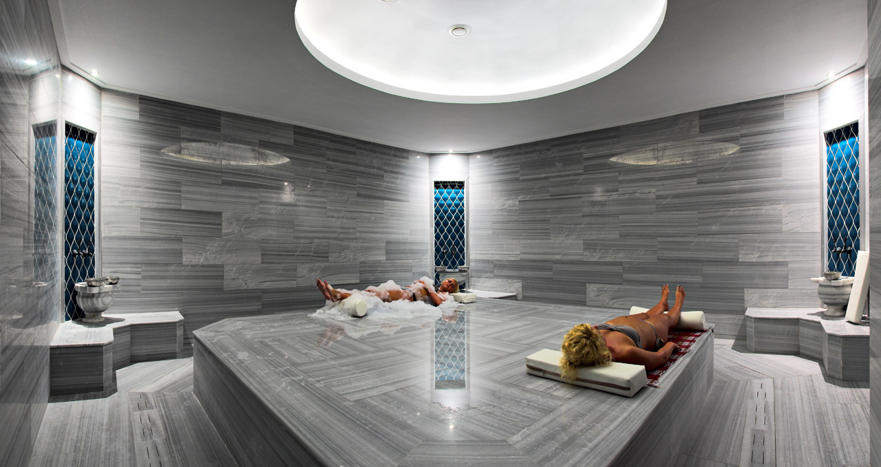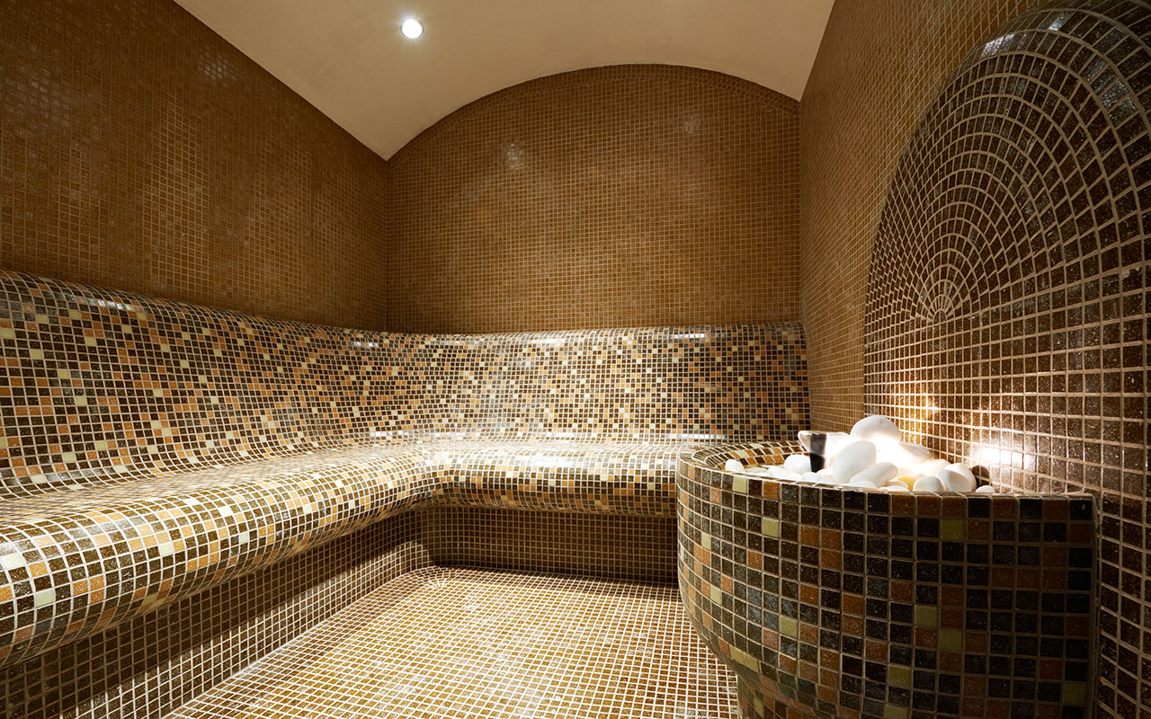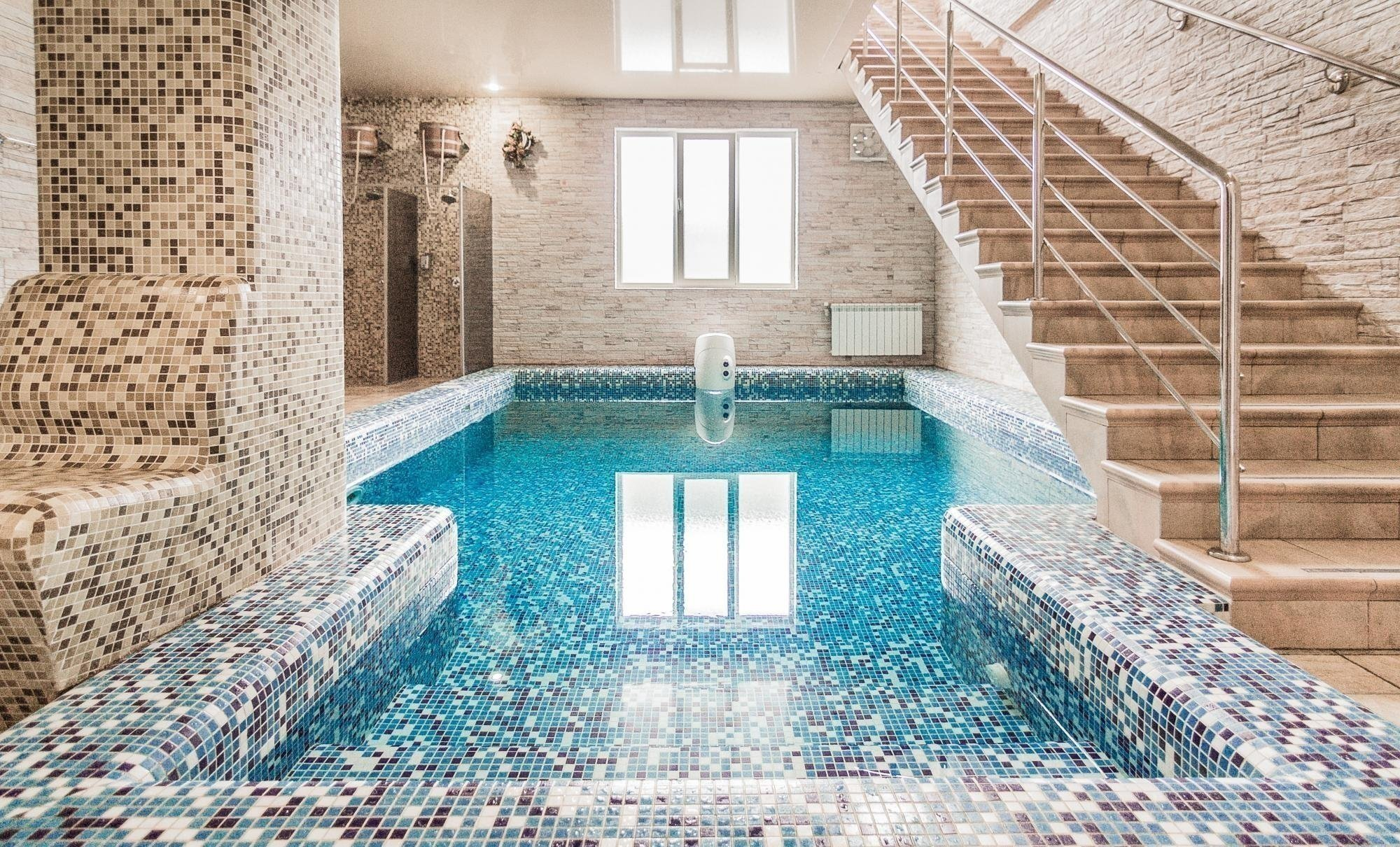 Цветная мозаика в дизайне турецкой парной с бассейном