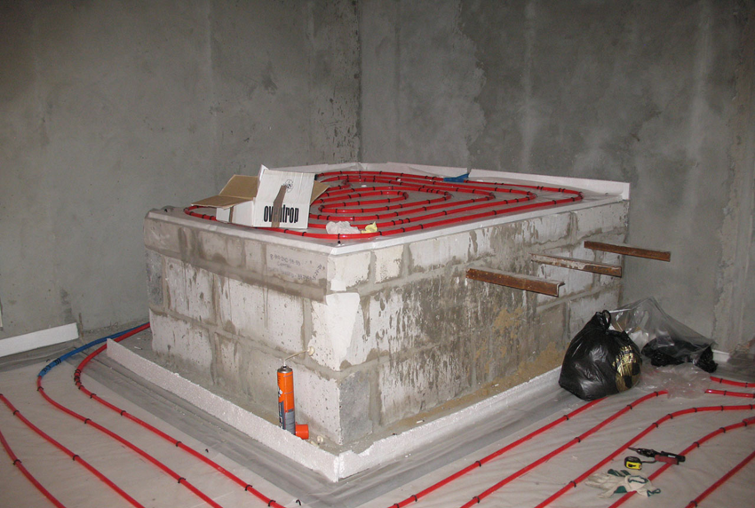 Монтаж печи проводится только на заранее подготовленный, хорошо высохший и отстоявшийся фундамент. Материалом для строительства каменки являются – шамотный огнеупорный кирпич и средней жирности глина.