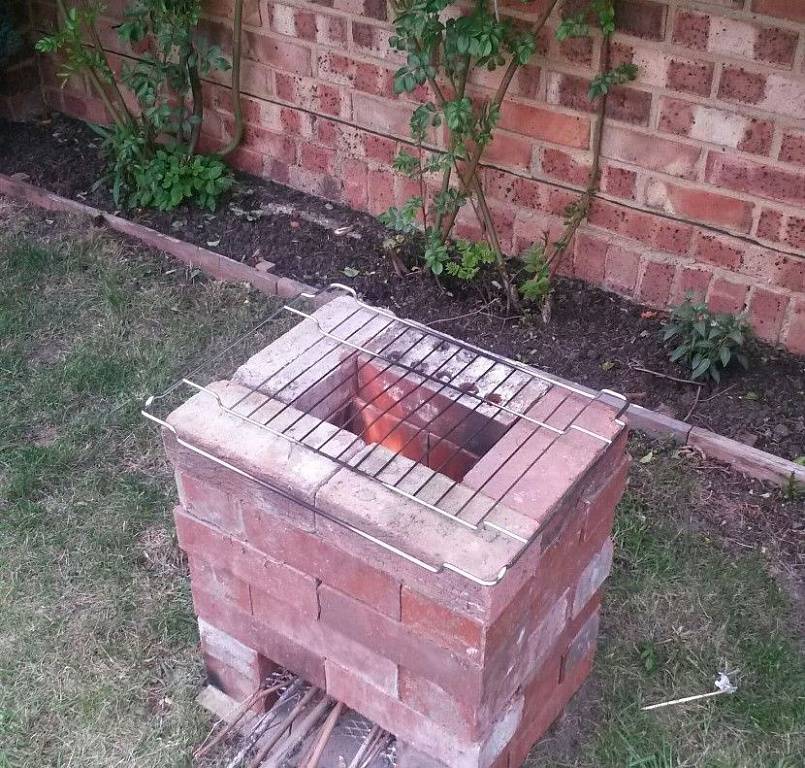 Возможно, даже возведение мини-печки без использования раствора. Достаточно будет лишь готовой решётки для барбекю или мангала и нескольких десятков кирпичей. Чтобы конструкция не рухнула, будет достаточно лишь небольшой ровной площадки.