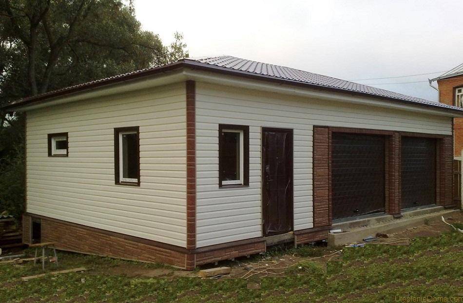 Совмещенная баня с гаражом нуждается в обшивке теплоизоляционным материалом с наружной стороны. Для этой цели применяется пенопласт, при помощи которого можно быстро выполнить работу с минимальными затратами. Процесс обшивки выполняется следующим образом: