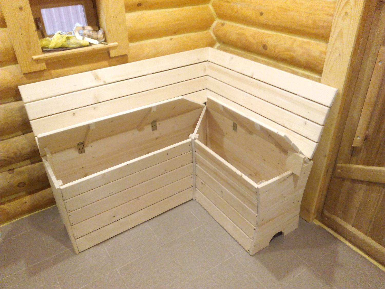 Предбанник в небольших сооружениях выполняет функции раздевалки, места отдыха, склада для дров. Даже комната скромных размеров обставляется нужной мебелью: лавкой или диваном, вешалкой, полками для обуви, столиком.