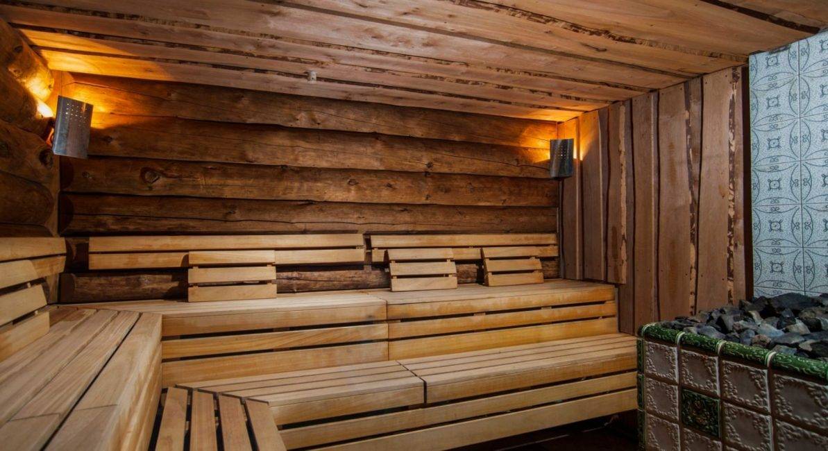 В парной размещают печь и полоки. Обязательно устройство экранов для защиты от пожара, а людей нужно обезопасить от получения ожогов.