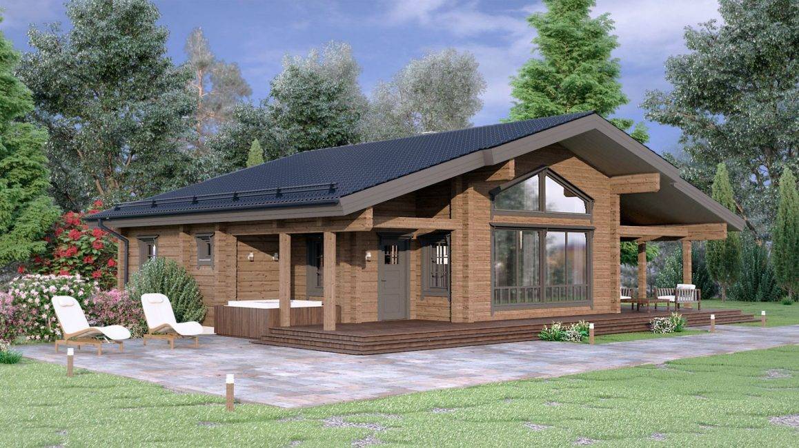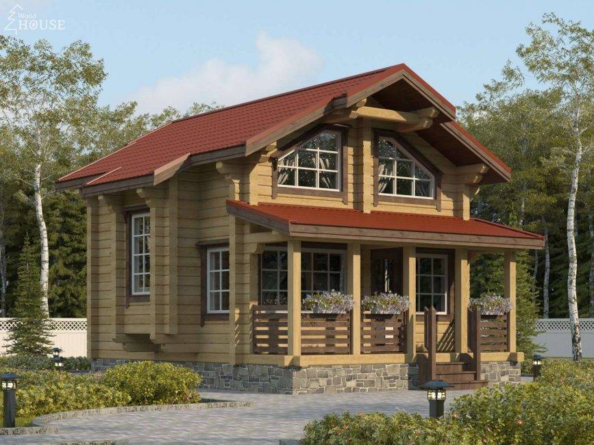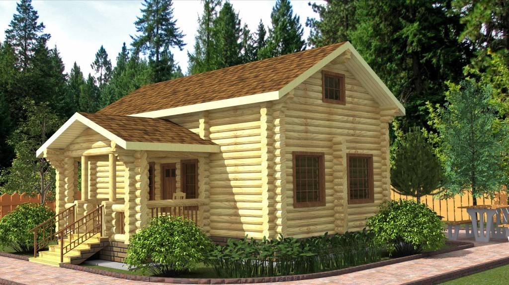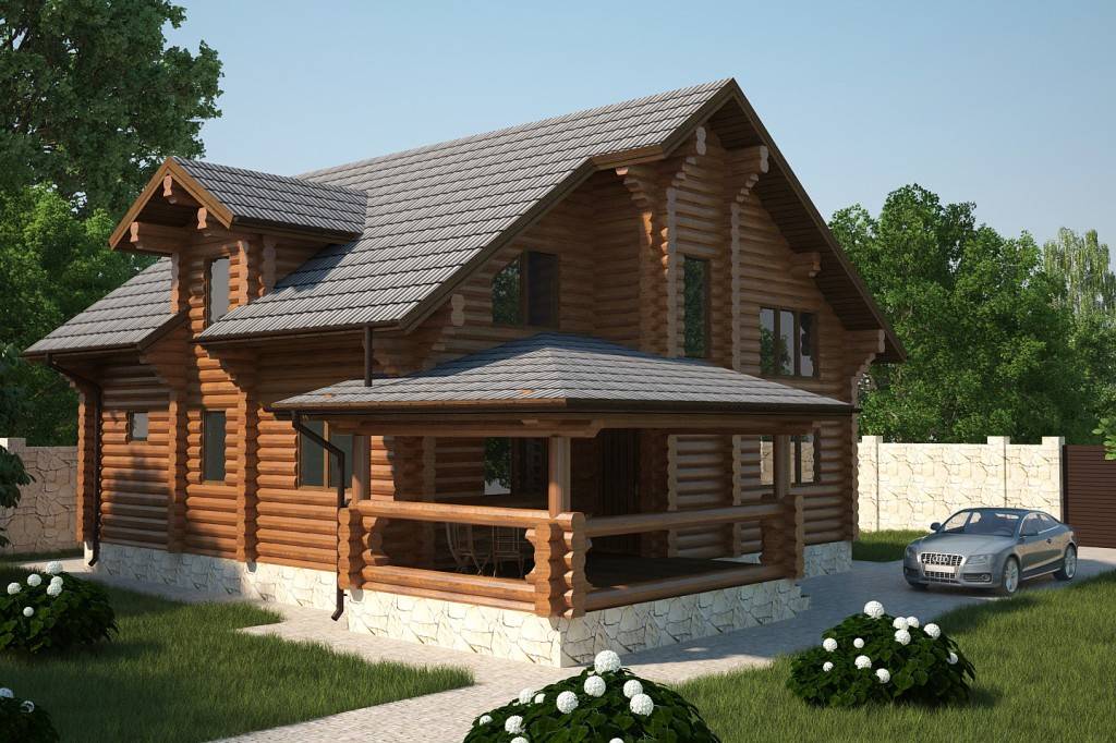 В первом варианте представлен домик в деревенском стиле из оцилиндрованного бревна.