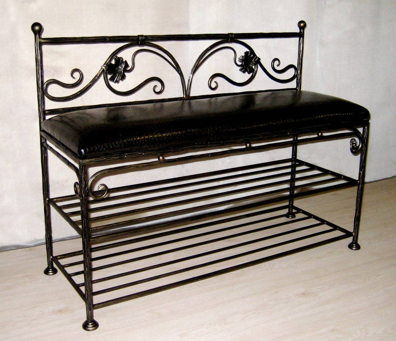- Кованая банкетка обеспечивает комфорт во время переобувания, одевания ребёнка, ожидания гостем домочадца;