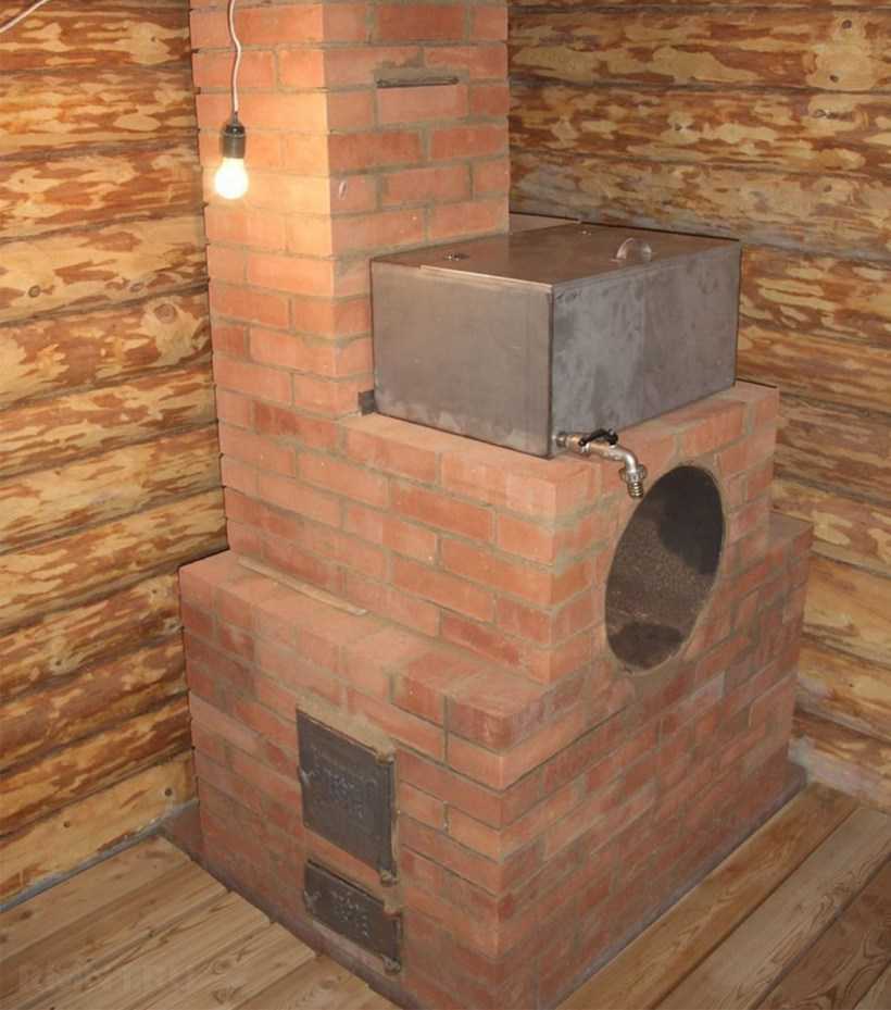 Печи также могут иметь встроенный водонагреватель, размещаемый рядом с каменкой или на печной трубе.