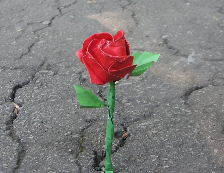 - из картона вырезать стебель, с одной стороны которого приклеить готовую заготовку цветка, с другой – предварительно вырезанную деталь с лепестками;