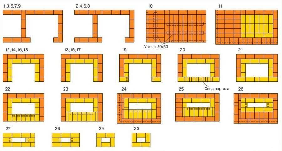 Ну а дальнейшая кладка проводится согласно выбранной порядовке. Ниже приведено несколько примеров такой порядовки, которые вы можете использовать для своего строительства.