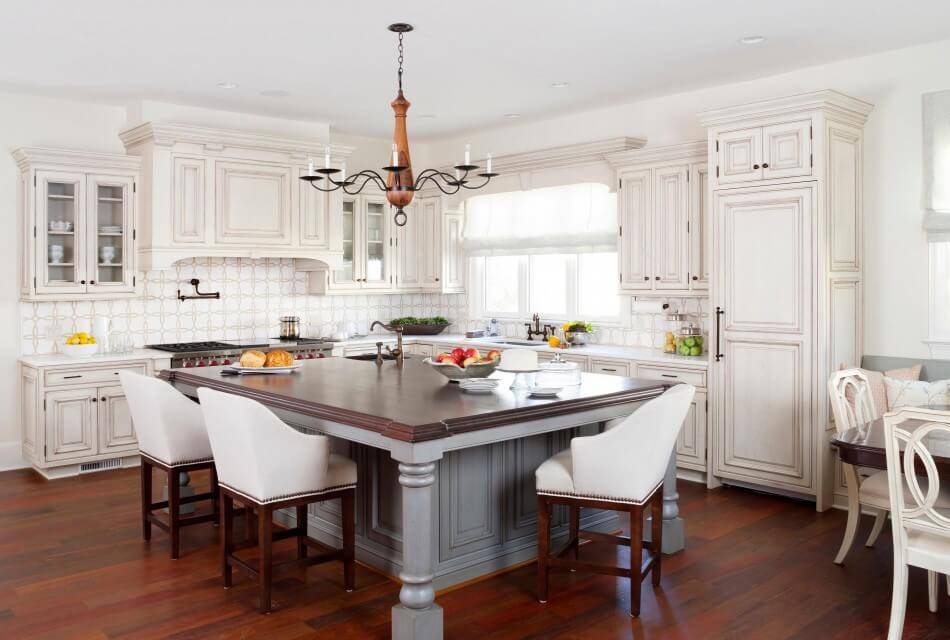 Вы можете выбрать любые оттенки белого — от белоснежного до цвета топленых сливок. Здесь царит дерево. Его структура видна даже сквозь белую краску или лак.