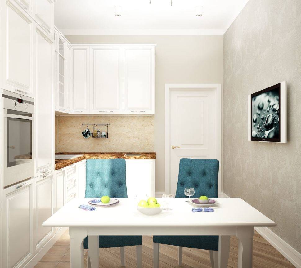 Для маленькой кухни белый оттенок – спасение, возможность расширить пространство, а в сочетании, к примеру, с зеркальным фартуком или стеной, отличная возможность расширить пространство.