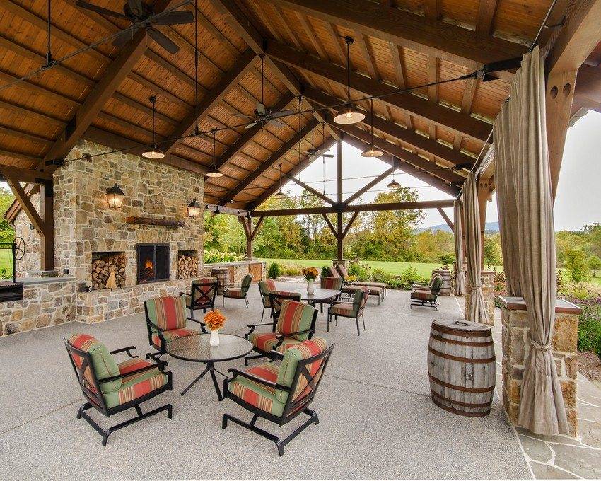 Просторный павильон с каркасом из дерева во дворе частного дома