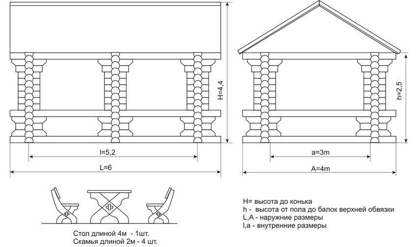 Схема устройства деревянной беседки