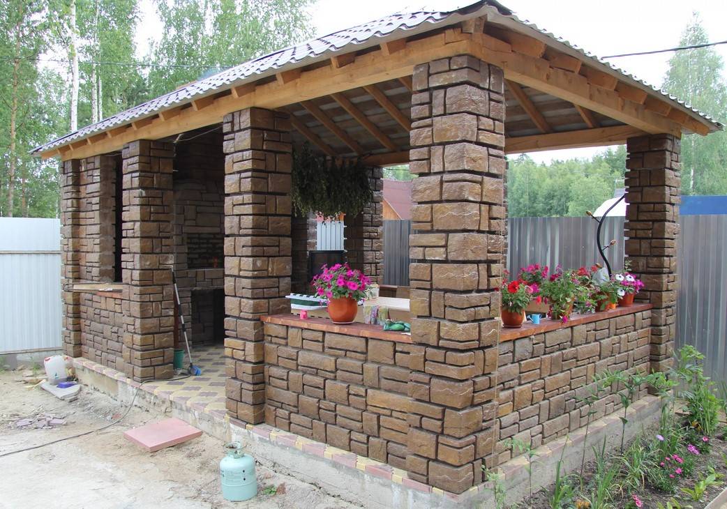 Кирпичные беседки с мангалом, фото полузакрытой конструкции