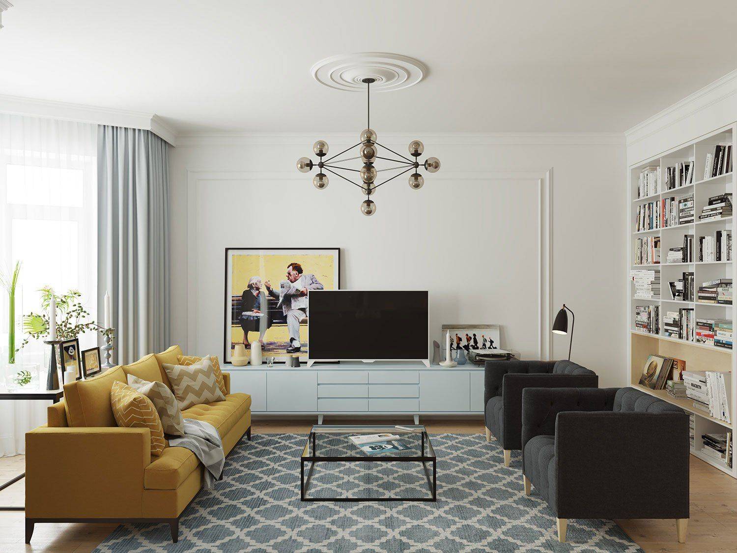 Это можно легко компенсировать, убрав относительно ненужную мебель, чтобы добиться более выраженного минимализма и добавить в гостиной декоративных деталей – картин, эстампов, постеров, модных подушек, салфеток и текстиля в актуальных расцветках.