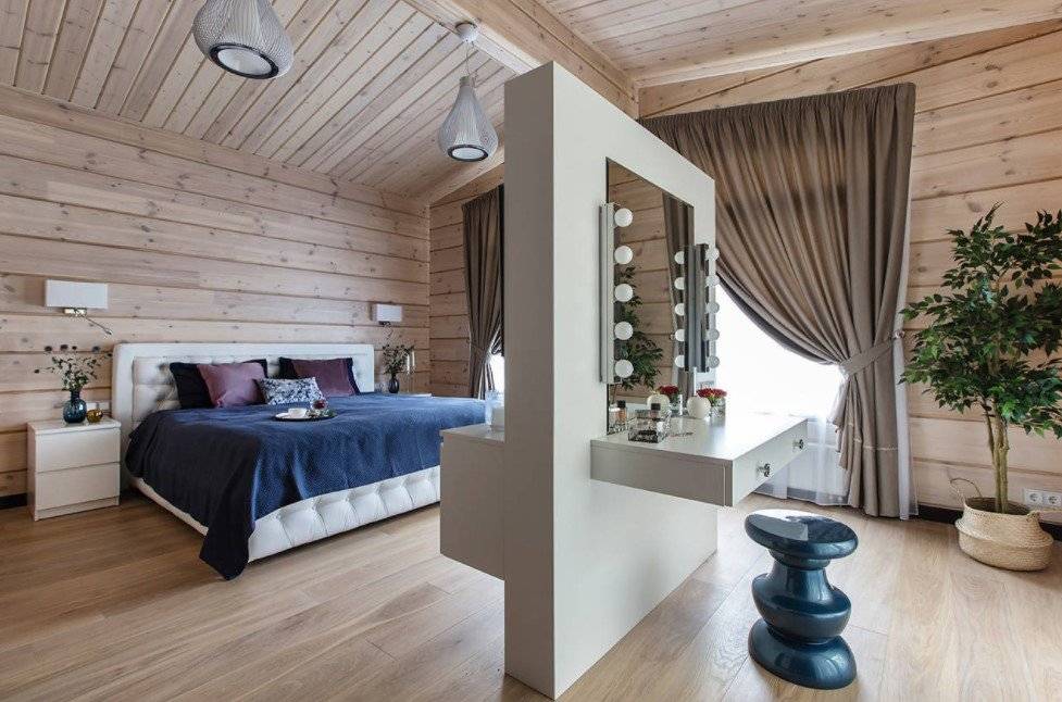 При наличии туалетного столика, над ним часто размещают бра. Рекомендуемая высота — верхняя треть зеркала. При таком положении освещения будет достаточно как в кровати, так и возле зеркала.