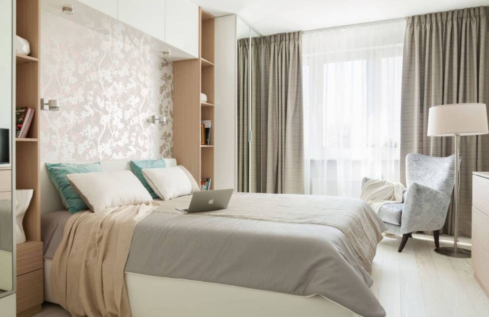Прекрасный интерьер небольшой спальни, продуманный до мелочей