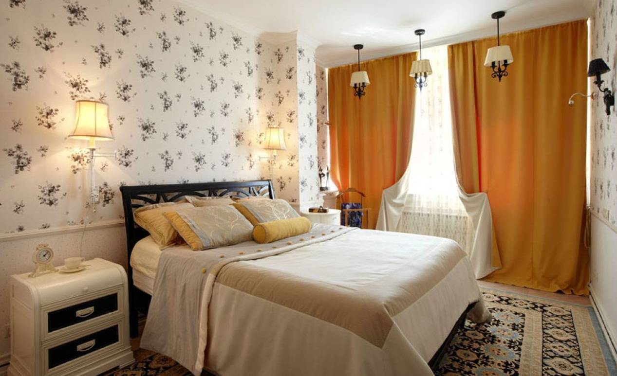 Обои необходимо выбирать внимательно, ведь в зависимости от цвета и рисунка, помещение может кардинально изменится. Если на обоях есть мелкий рисунок, это не очень подходящий вариант для спальной комнаты, причина этому – надоедливые мелкие узоры. Стоит отдавать предпочтение большим рисункам, они сделают спальню визуально большой, придадут объем помещению.