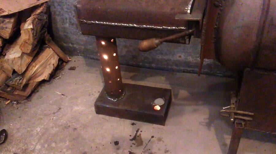 - К вершине печки, сооруженной из отслужившего газового баллона, приваривают патрубок. Внутренний диаметр патрубка должен быть равен наружному диаметру устанавливаемой в него трубы