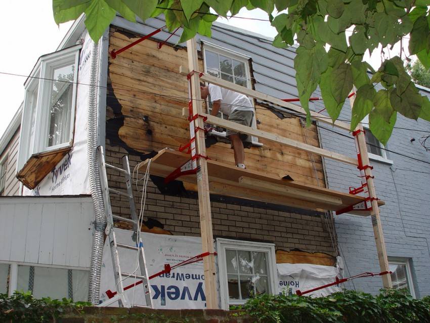 То есть на подобном приспособлении можно проводить только такие работы, как оформление фасада (окраска, отделка сайдингом), обработка потолков, штукатурка и ряд иных. При возведении же кирпичной кладки или одновременном пребывании на высоте нескольких человек деревянные леса непригодны. А вот сборка из труб и досок универсальна в использовании.