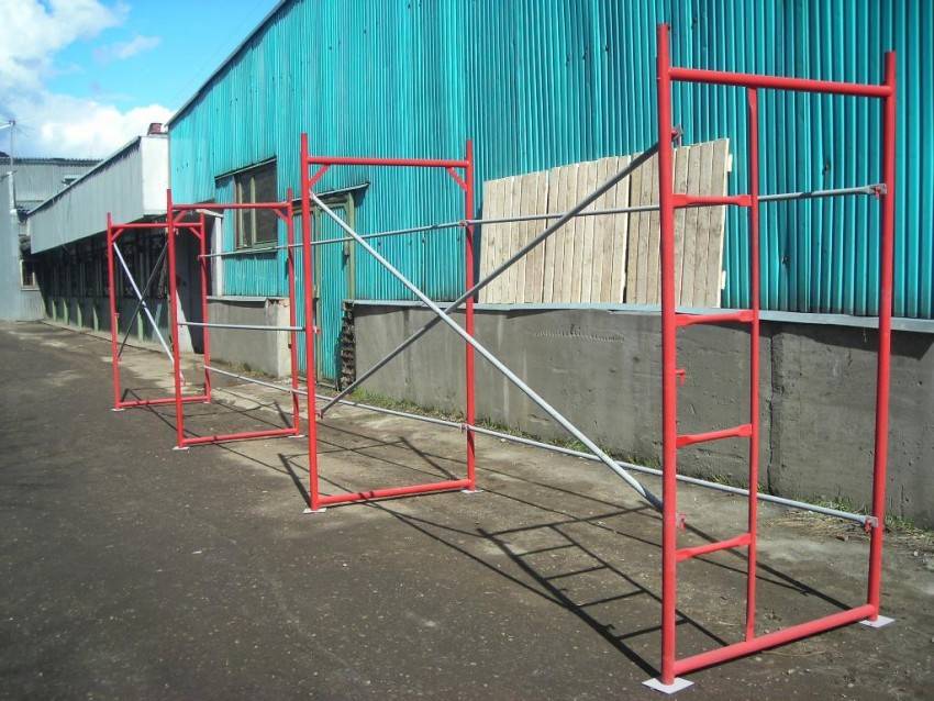 Основным элементом такой конструкции является жестко установленная рама. Преимущественно их используют для покрасочных или штукатурных работ. Рама в такой конструкции связана с горизонтальными стойками и диагональными связями благодаря узловым соединениям. Главное преимущество рамных лесов в их дешевизне. Для их строительства не потребуется больших вложений.