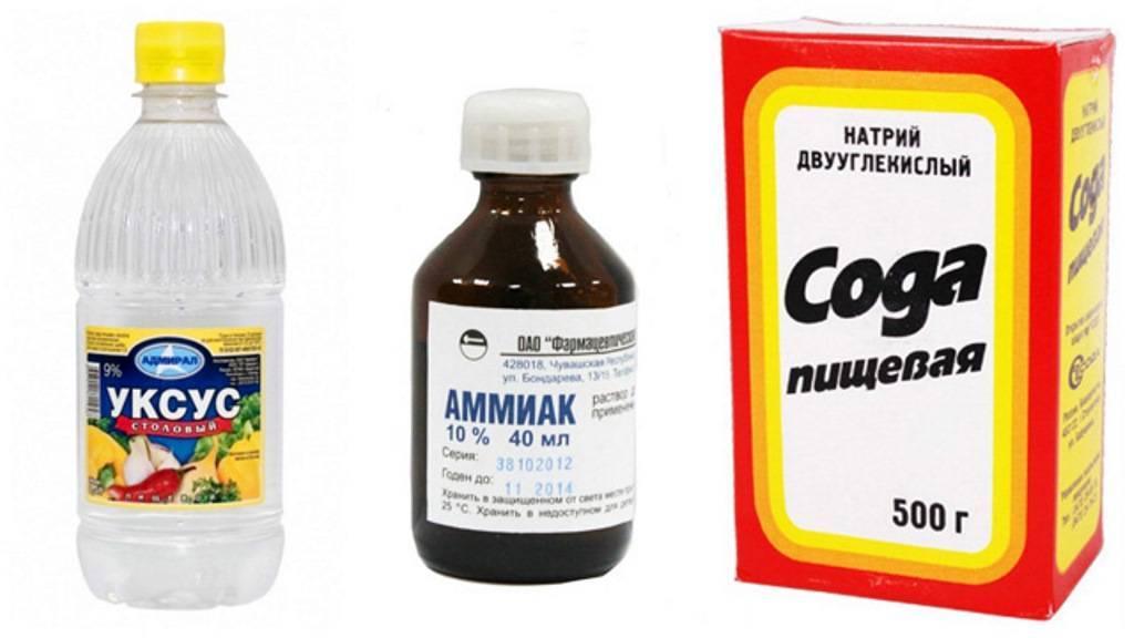Свою эффективность в борьбе с разводом от мыльной пены неоднократно доказал нашатырный спирт. Чтобы усилить действие нашатыря, можно приготовить чистящий раствор с добавлением соды и уксуса. Для изготовления такого средства потребуются следующие ингредиенты: