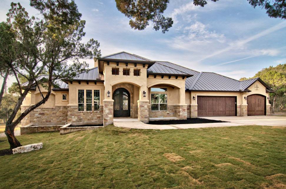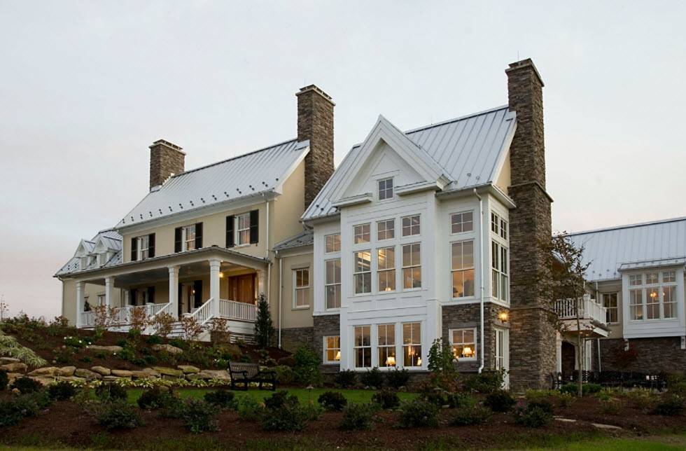 - При выборе цветовой гаммы для окрашивания фасада частного дома необходимо выбирать по яркости и насыщенности что-то среднее между цветом кровельного материала и цокольной части постройки.