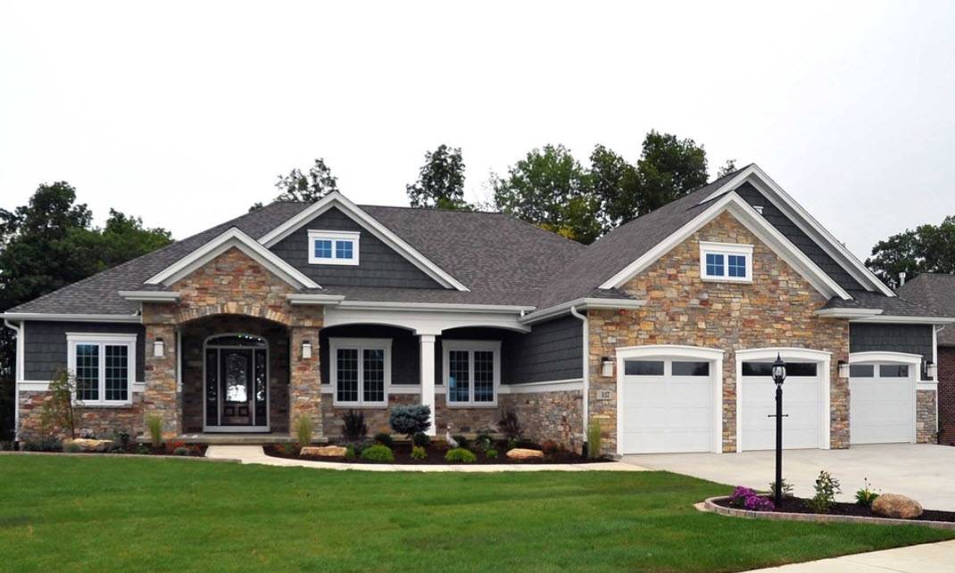 Хорошо, если такая отделка заложена в строительном проекте. Если же нет – необходимо выполнить инженерный расчет несущей способности фундамента с учетом дополнительных нагрузок и при необходимости провести работы по его усилению. Каменная облицовка может быть, как в виде одинаковых или разноразмерных прямоугольных плит, так и в виде плит со рваными краями.