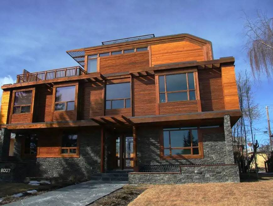 Под дерево – может изготавливаться из винила, фиброцемента, древесного волокна. Также под дерево очень привлекательно выглядят японские фасадные панели: