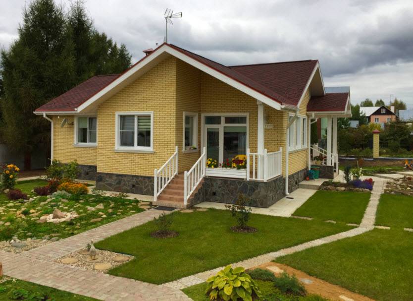 Варианты отделки цоколя кирпичного дома весьма разнообразны. Строительный рынок переполнен всевозможными материалами и технологиями, которые могут быть использованы в этих целях. Кроме того, достаточно широко используется природное сырье, в том числе различные виды натурального камня, песчаника, гальки и т.д.