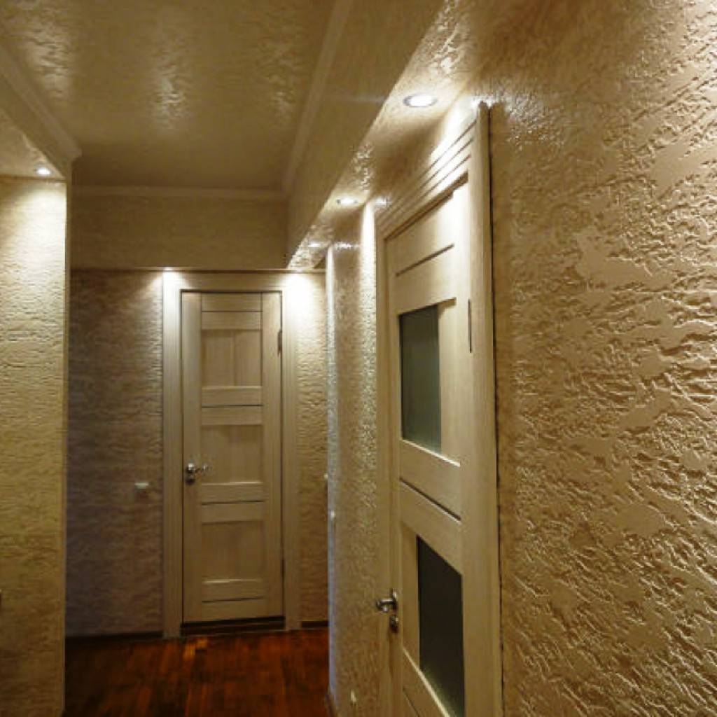 • Декоративную штукатурку. Прочный, устойчивый к разным видам воздействия материал, способен преобразить коридор до неузнаваемости. Оригинальные текстуры обеспечивают создание различных имитаций, эффектов, рельефных рисунков.