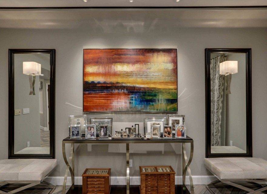 - Отказаться от резких контрастов за исключением аксессуаров: светильников, обрамлений, вешалок.