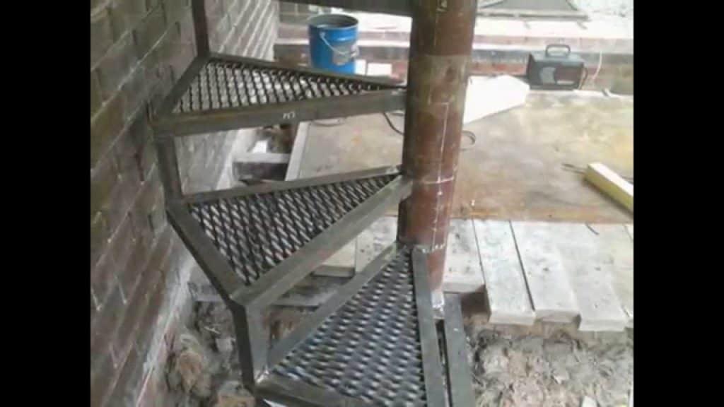 Винтовые лестницы в погреб состоят из опорной стойки и ступеней. Металлические конструкции приваривают к основанию. Стойку делают из стальной трубы сечением 10-12 см. Поверх каркаса крепят декоративные ступени из дерева или металлической сетки.