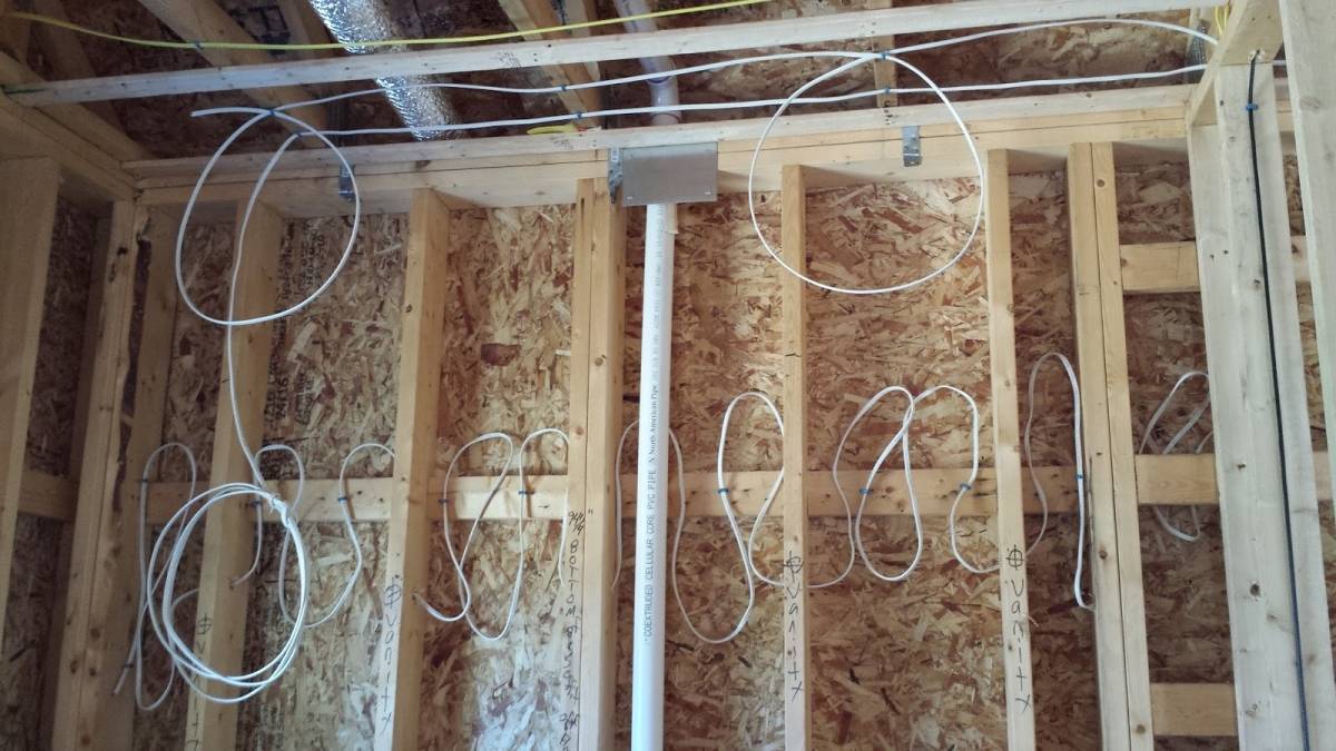 - При проходке кабеля через стену нужно вставлять кусок металлической трубы. Это необходимо для того, чтобы исключить повреждение кабеля при деформации стены.