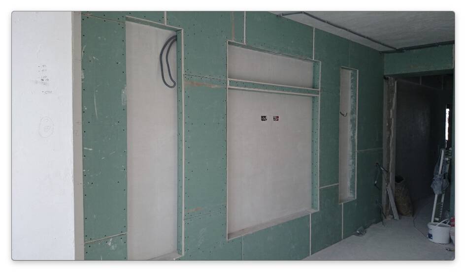 На следующем этапе можно произвести выравнивание стен штукатуркой или гипсокартоном (из него же уместно создавать арки, ниши и перегородки).