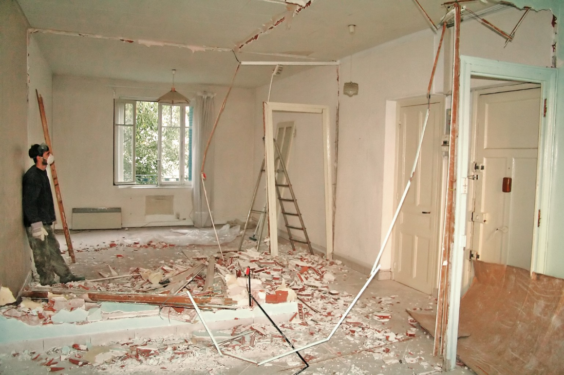 - После того, как вся отделка демонтирована, и всё сложено в мусорные мешки (вы же закупились мусорными мешками? такими, зелёненькими или белыми из полипропилена) нужно понять, следует ли вам менять стяжку, делать новую, возможно, какие-то перегородки тоже потребуется… ну, хотя бы укрепить, или снести и выстроить по-новой. Стяжка — это особый момент и если вы ремонтируете вторичку, то практически всегда стяжка оставляется как есть. Спустя даже 50 лет она часто находится во вполне пригодном к использованию состоянии ещё на 50 лет.