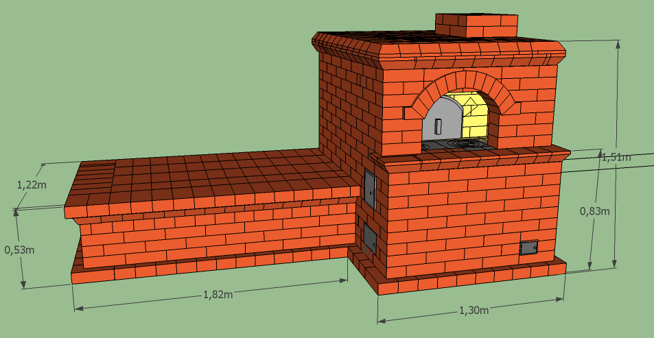 - Мини-русская печь: 1500 x 1000 x1 990 мм.