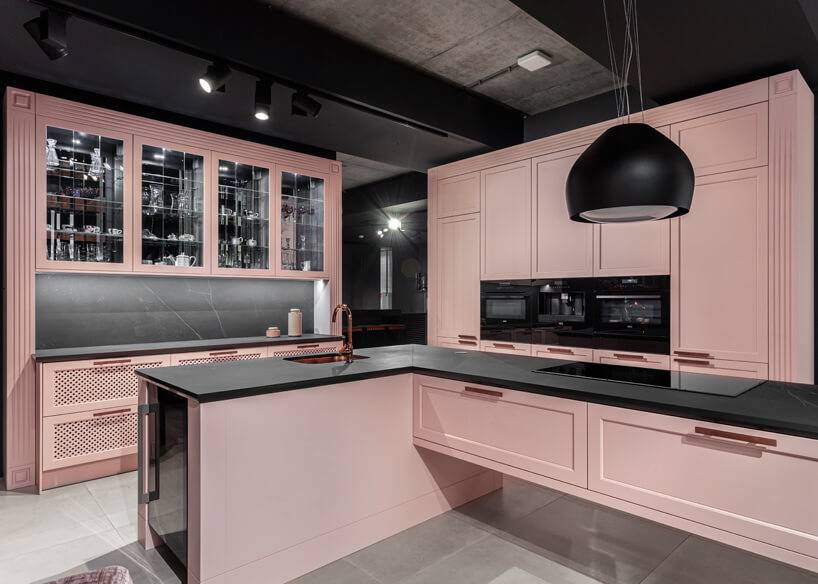 Среди самых модных цветов интерьера кухни 2021 года нельзя не заметить теплые оттенки розового, красного и оранжевого. В первом случае три оттенка розового даже были названы цветами 2021 года-элегантный, но приглушенный теплый оттенок розового с ярко выраженными абрикосовыми тонами.