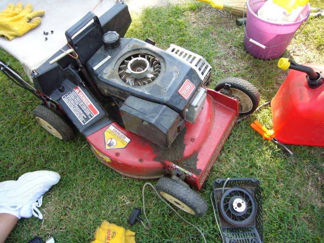 Окончательными работами с газонокосилкой являются замена всех имеющихся воздушных фильтров и масла в двигателе, а также проверка электрического кабеля (если газонокосилка работает от электричества) на целостность: в случае оголения провода либо заменить его (что лучше и безопаснее, но дороже), либо изолировать изоляционной лентой (что менее безопасно, зато дешево).